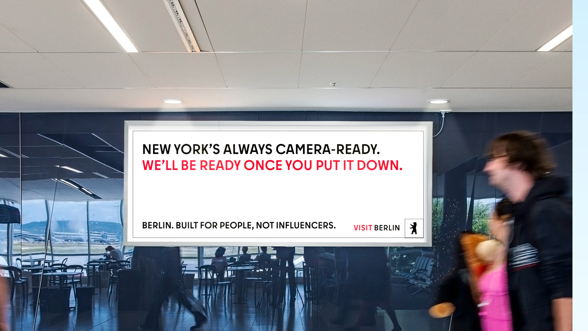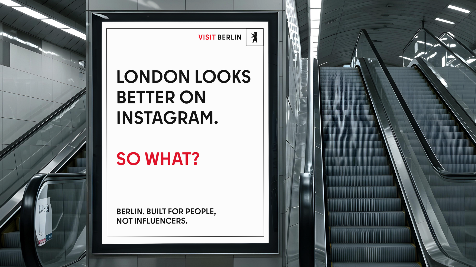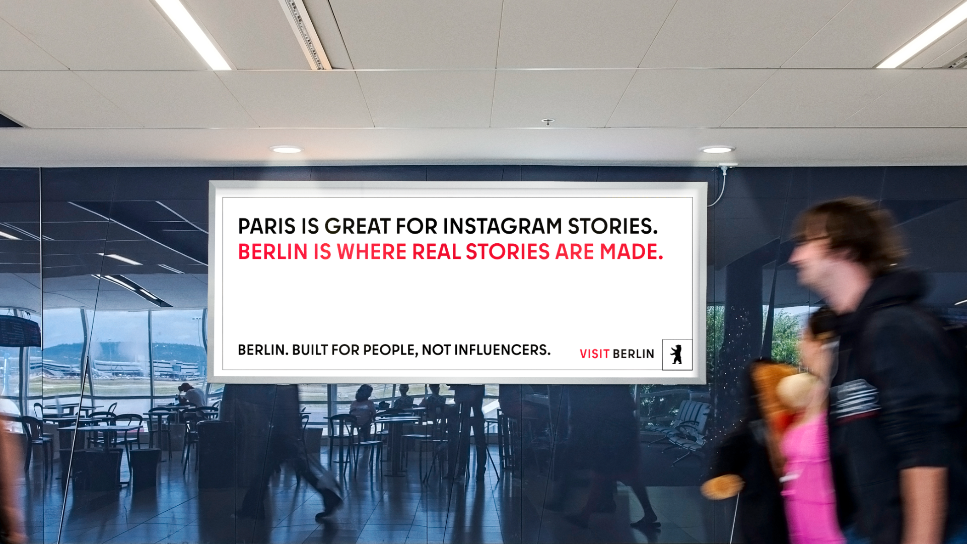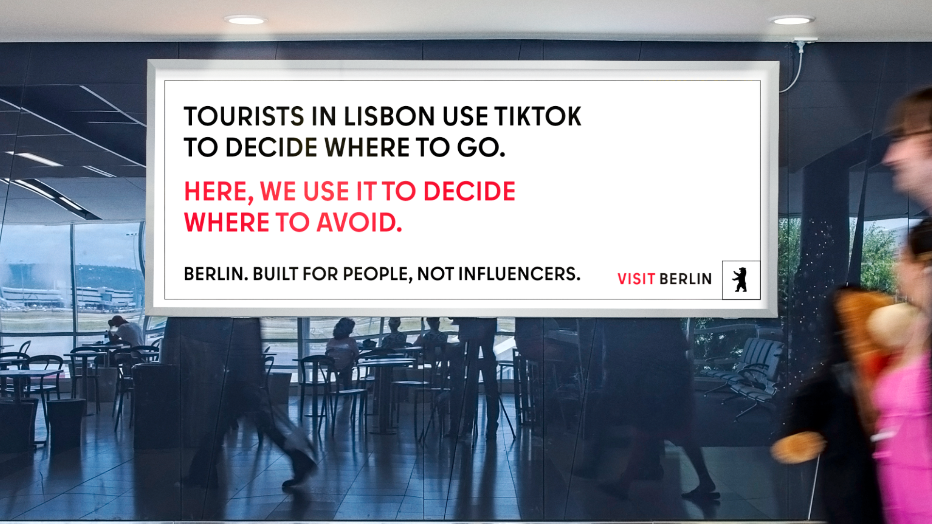 Strategy: Berlin has seen a drastic drop in tourism since the pandemic, so our job is to GET EU citizens aged 19-25 WHO seek authentic travel experiences TO visit Berlin BY embracing the city’s ruggedness, harnessing its raw energy, and announcing that it will change for no one.